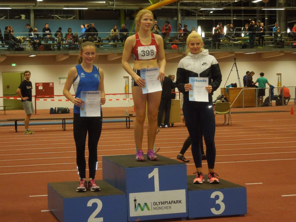 Katharina durfte gleich nach dem Staffellauf zur Siegerehrung des Weitsprungwettbewerbs antreten. Dort hatte sich die Athletin trotz verletzungsbedingten Trainingsrückstands nervenstark im 23-köpfigen Teilnehmerfeld behauptet.