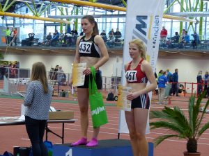 Im Hürdensprint wäre fast auch Franzi Aderbauer auf dem Podest gestanden. Als Dritte im schnellsten Zeitlauf des 60-m-Hürdenlaufs belegte Franzi letztlich den 4. Rang. Wieder war Elisabeth Hafenrichter von der LG Stadtwerke um wenige Hundertstelsekunden schneller. „Das war schon beim letzten Mal ganz knapp“, erinnerte sich Trainerin Sabine Osenberg an das Finale der Bayerischen Meisterschaften in Aichach, freute sich aber über Franzis neue persönliche Bestleistung.