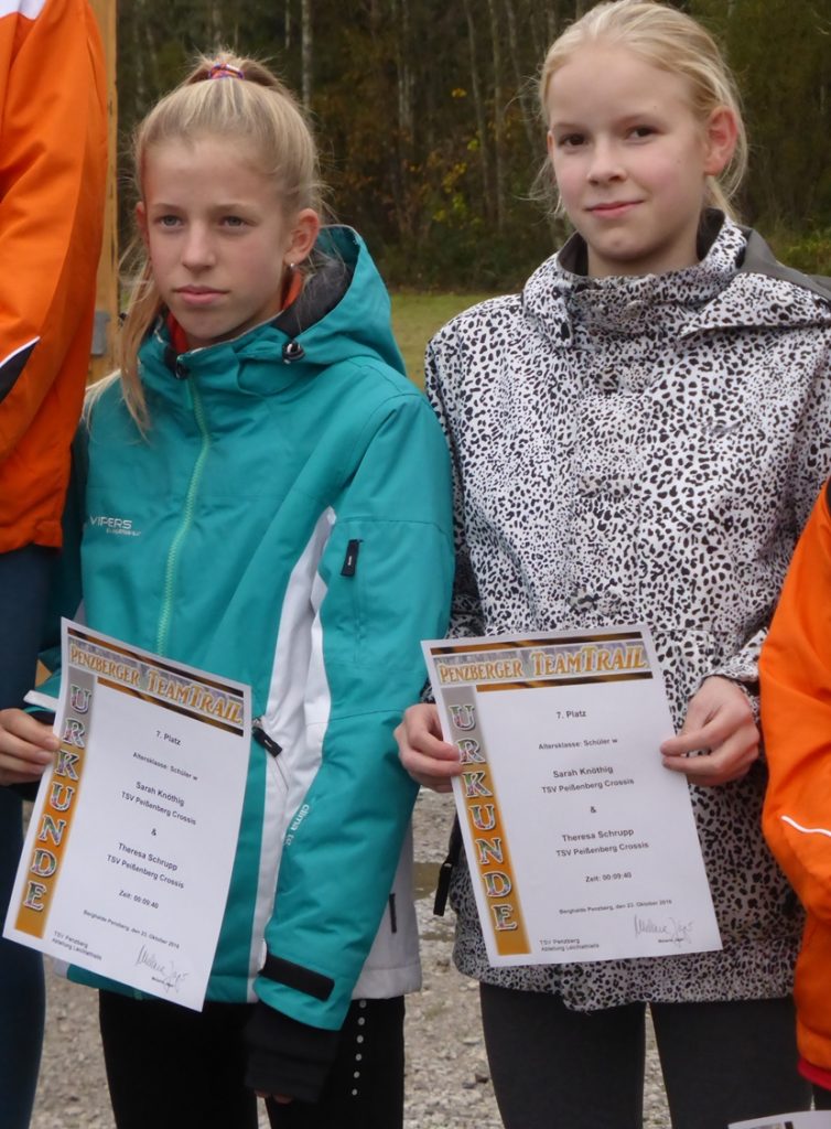 Verdienter Lohn unseres Teams in der Jugendklasse über 6 x 600 Meter: Platz 2 und silberne Schuhe („o nein, wie süß“) für Judith Knöthig und Maike Hermann nach 14:38 min.