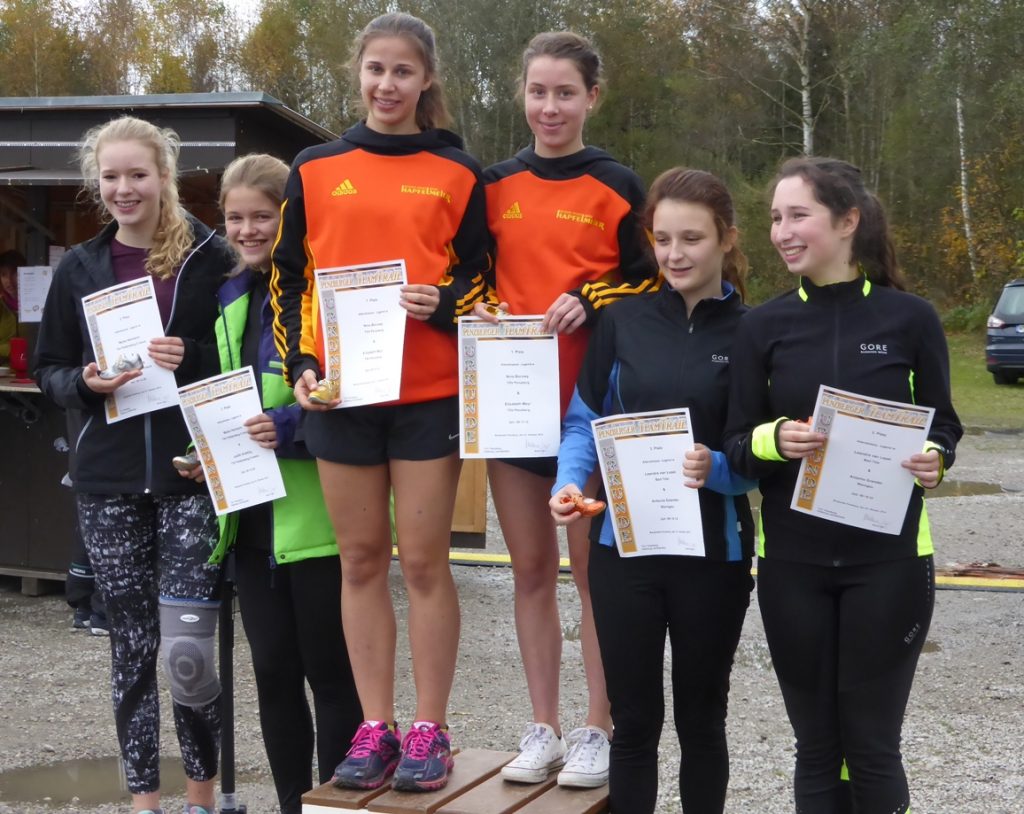 Am Start des Schülerrennens über 4 x 600 Meter: Clara Wimmer, Marina Neumeier, Sarah Knöthig und Theresa Schrupp.