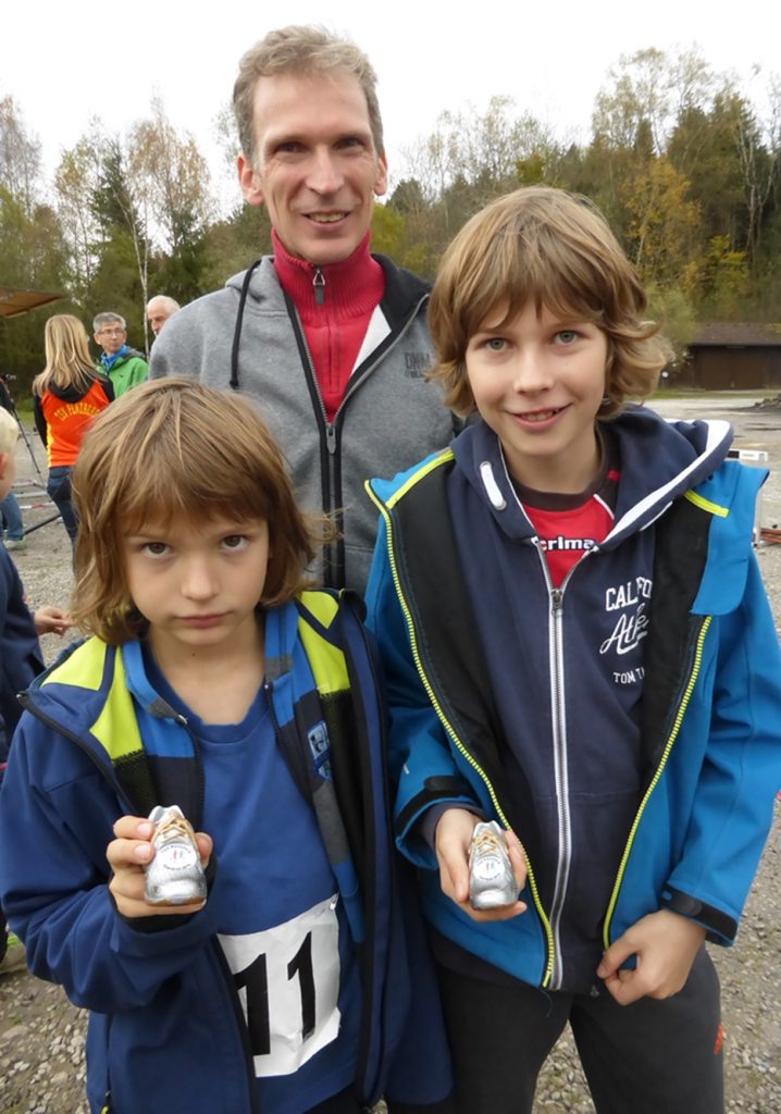 Nun zur heute erfolgreichsten Familie der Peißenberger Crossis. Bei Streichers nahmen Simon, Martin und Josef gleich drei Schuhe nach Hause. Simon und Martin hatten als Zweite bei den Teens nur noch ein Team vor sich und sprinteten in einem spannenden Finale nach 4 x 600 Metern in 9:15 Minuten vor den Siegern der Mädchen und der Mixed-Klasse ins Ziel.