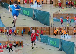 Die Sprungdisziplinen werden für die älteren Teilnehmer noch ein bisschen komplizierter. Bei den Wechselsprüngen der U10 und beim Fünfsprung der U12 sind die Teilnehmer gefordert, die passende Schrittfolge einzuhalten, in die Reifen zu treten und das bei den Wechselsprüngen so schnell wie möglich zu schaffen oder im Fünfsprung mit einem weiten Sprung abzuschließen.