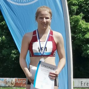 (01.06.2019) Die Formkurve zeigt nach oben: Bei schönstem Sommerwetter holte sich Katharina Vogl in Freising den Titel der Oberbayerischen Meisterin im Weitsprung der Frauen. Wie 2018 und 2017, und damit gelang der erst 20-jährigen Hohenpeißenbergerin erneut die Titelverteidigung.