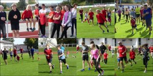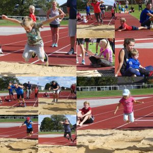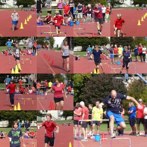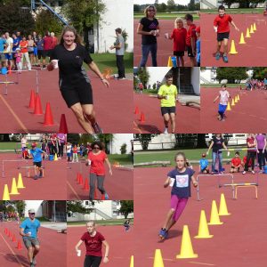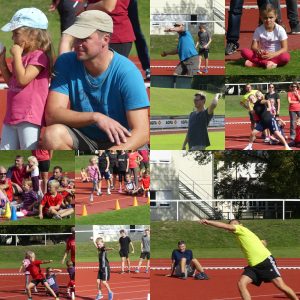 Sprint, Wurf und Sprung für Kinder und Eltern mit Oktobersonne