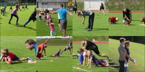 Der Sommer hat uns noch eine wunderbare Zugabe gegönnt. Schon beim Aufwärmprogramm waren einige Schweißperlen zu sehen, und danach waren Kinder und Eltern gleichzeitig im Wettkampf gefordert. Wasserbecherstaffel, Ballwurf und Sprünge aus dem Stand: Die Ergebnisse bekommt ihr per Mail, die Bilder findet ihr hier. Wir sagen Dankeschön an alle, die uns mit Salaten und Kuchen unterstützt haben.